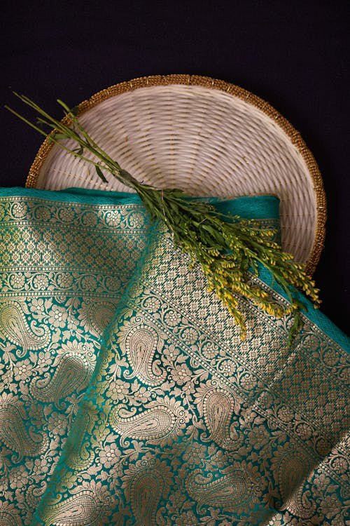 • Banarasi: Known for its opulent silk and rich embroidery, often adorned with gold and silver threads.